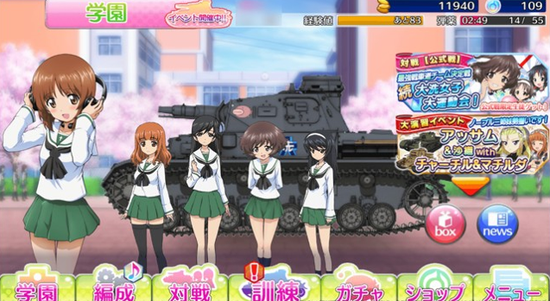 完整再现原作角色,众学园美少女将打破藩篱,玩家可从大洗女子学园、圣葛罗莉安娜女子学院、桑德斯大学附属高中…等学校自由挑选美少女组合成最强大的梦幻队伍,击败敌人获得光荣胜利。