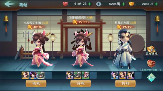 帮派活动新增踢馆玩法,玩家每天可进行一次踢馆,与亲友团一起挑战应邀而来的对手。踢馆发起者可在3个踢馆对手中选择一个进行挑战,剩余的对手需要邀请帮派成员或好友来挑战。