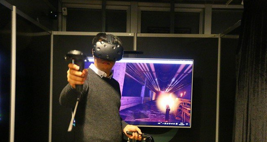 工作人员在讲解如何使用手柄VR网吧内每个体验区都经过了精心的设计,包括天花板上的Vive感应器和房间内的音响设备都配置的十分到位,给玩家体验最好的沉浸体验。 店长介绍说:“来体验VR的基本都是三五成群的年轻人,他们比较能够接受最新的事物。由于目前大众玩家对VR游戏还不了解,我们一帮会给顾客推荐一些好玩的VR游戏,目前总的游戏大概是20多种,大家最喜欢的游戏还是《音盾》、《布鲁克海文实验》、《Hover Junkers》和《HordeZ》。”