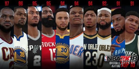 《NBA 2K18》最强10人揭晓!官方推特公布了今年游戏中能力值最高的10位球员,詹姆斯以97分的能力值傲视群雄,10位球员能力都超过了90,其中勇士、鹈鹕和雷霆都有2人上榜。