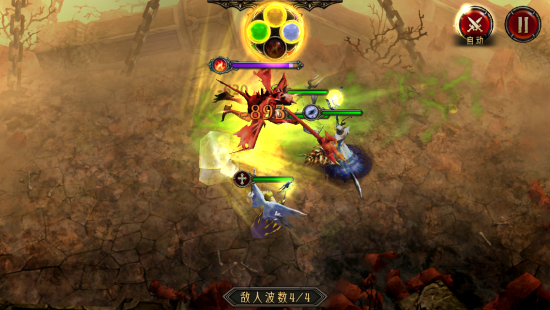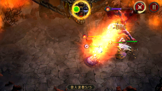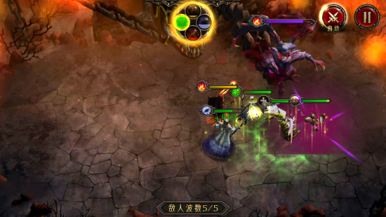 《地狱之门》游戏截图6之召唤系统在《地狱之门》的副本战斗中,某一元素属性的使徒杀死怪物即会有该元素能量的积攒,比如风、土、火元素使徒上阵,风属性使徒击杀了一名怪物,界面上方对于的风属性蓄力槽便会增加一些能量,蓄满之后可通过能量槽释放该属性大招。
