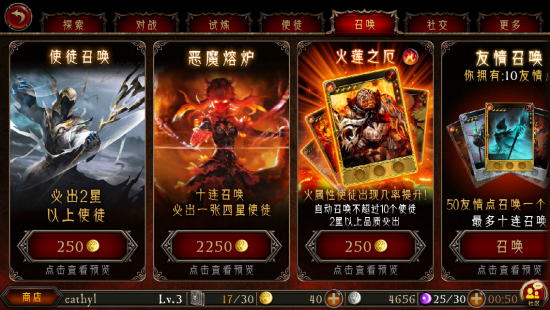 《地狱之门》游戏截图7之试炼系统《地狱之门》的开发商和运营商对于玩家之间的交互还是比较看重的,在玩家刷副本的进程中时而会跳出提示说你遇到了一位召唤师,是否将他添加为好友,当玩家添加之后,会在刷副本开始时提示是否需要好友帮助,通过好友的帮助或是被好友用来帮助战斗均会获得友情点,可以使用友情点来抽取使徒。