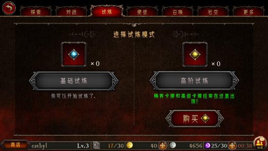 《地狱之门》游戏截图10蘑菇酱觉得游戏中很有意思的是试炼系统,是一个小游戏,分为普通和高级,需要玩家在限定时间内将12张或者更多背面朝上的牌翻页匹配,很是考验记忆力和反应力,匹配成功的怪物就会归于你的麾下,相对来说还是很有挑战性和乐趣的。还让我觉得有意思的是遭遇卡机或者加载时会提示:“请等待,地狱业火永不熄灭”,似乎真的可以沉浸在那个气势恢宏的游戏世界中不再出来....。.