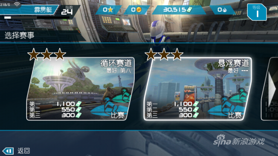 《激流快艇2》游戏截图4《激流快艇2》在玩法上的表现游刃有余,游戏一共为大家准备了8大关卡,每个关卡中都有不同的场景对应,而且每一个关卡都精心为玩家准备了多条赛道,这让游戏玩起来丰富多彩。玩家通过获得星级评定的数量来解锁关卡,这就要求玩家竭尽全力去进行比赛,否则永远无法到达下一场比赛中。而且每一场比赛下来游戏会根据成绩的高低奖励玩家不同的金币,使用金币能对自己的摩托艇进行改造和更新,使自己在比赛中脱颖而出。游戏中有几十种不同的特技供玩家学习,可以通过升级获得的技能点来实现。技能的释放各有不同,大多是使用手指根据一定的方式和顺序滑动屏幕。有了这些技能的帮助,玩家在比赛中将获得更加真实和刺激体验,让你的动作更加炫酷精彩。