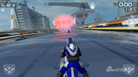 《激流快艇2》游戏截图1《激流快艇2》的画面绝对是游戏的一大亮点,精美的3D效果让人眼前一亮,游戏将玩家置身于一片水的世界之中,光怪陆离、水波荡漾,水中的倒影清晰可见,时而还会反射出光点,起起伏伏,将水的动态效果表现的淋漓极致。相比前作,角色建模显得更细腻精致,画面质量十分高,游戏时仿佛切身实地的体会到驾驶摩托艇快速奔驰在水面上的感觉。同时游戏对比赛场馆的设计也非常用心,整体充满了科技元素,唯一的不足是对场馆中观众的描绘显得有些粗糙,如果能将观众人头攒动的效果表现出来画面效果会更好。