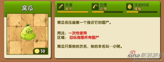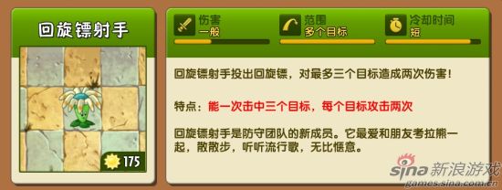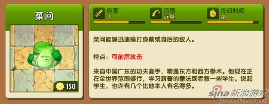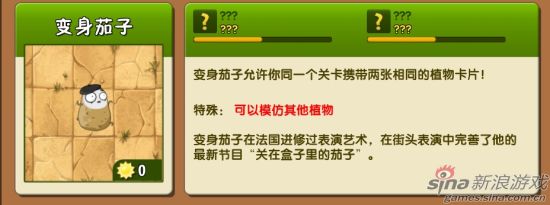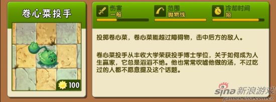 | 西瓜投手 | 豌豆荚 | 变身茄子 | 樱桃炸弹 | 冰冻生菜 | 回旋镖射手 | 双胞向日葵 | 菜问 |