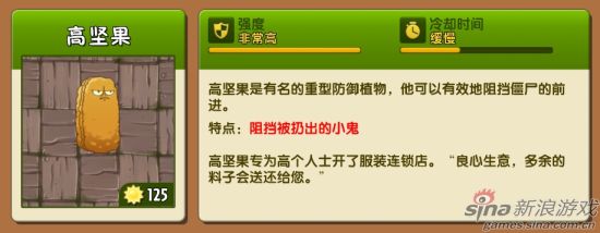 | 向日葵 | 豌豆射手 | 坚果 | 土豆地雷 | 卷心菜投手 | 双重射手 | 高坚果 | 钢地刺 |
