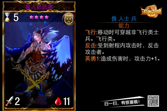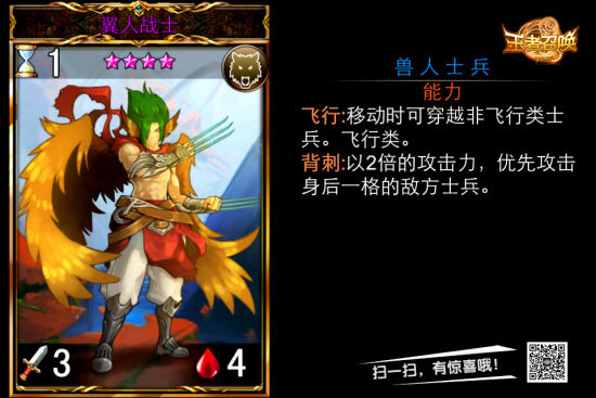 人马类卡牌翼人类卡牌都拥有飞行能力,可以直接越过敌方非飞行单位,机动性极强,并且有较高的生命值,攻击能力较弱。