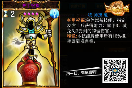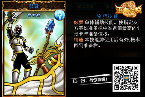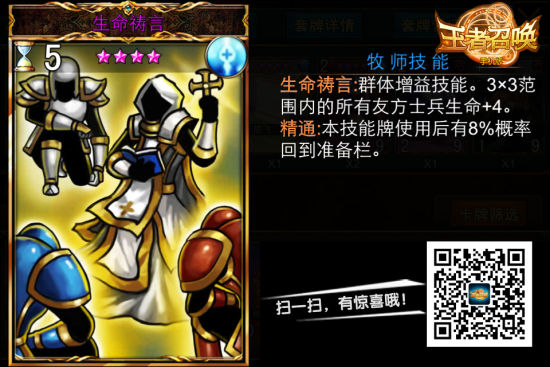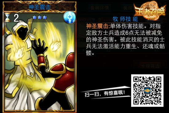 牧师技能《王者召唤》,2013年手游玩家必玩的卡牌回合制招兵对战游戏,将为你带来最精彩刺激的策略竞技体验,快来体验吧!