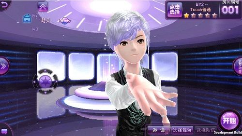 进入游戏大厅,玩家可以在右下方选择你喜欢的舞台,既可以与别的玩家一起跳舞,也可以自己来一场精彩的独舞,独舞的时候,《TOUCH》还为你精心准备了伴舞,给你明星级的待遇。为了增加玩家的逼真感受,《TOUCH》还特别设计了吻、生气、鼓掌、挥手等交互动作,让玩家更方便地进行互动。