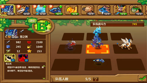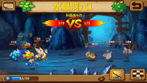 怪物王国《怪物王国》采用了经典的回合制战斗模式,并且引入了策略游戏中常使用的九宫格布阵玩法,每次战斗最多上场5只怪兽组成战斗小队。另外,在战斗中玩家还能自由切换集群攻击模式和单次攻击模式,集群模式开启后,你的怪兽基友们将会一拥而上,和敌人展开肉搏群P,场面之激情,简直让人不忍直视。