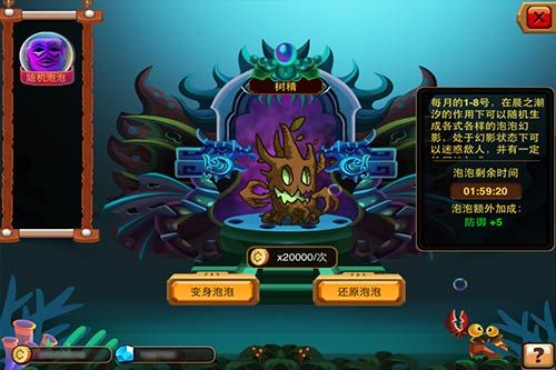 泡泡系统变身进化变身系统是《乱斗堂》的核心,玩家在游戏中可以变成喜爱经典角色。本次新版乱斗中,变身系统有了全新革新,推出变身新玩法——泡泡系统。泡泡系统来自一只神秘的鲸鱼,玩家们将运用鲸鱼体内不科学的泡泡将自己变身成游戏中的各种怪物,从而获得怪物属性的buff提升,从今以后,玩家将随心所欲地变身各种造型和角色,每天变身乐翻天。