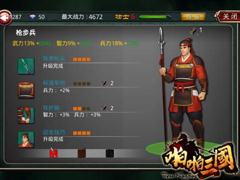 全3D画面最真实的战场体验《啪啪三国》首创卡牌游戏兵种进阶系统,可以根据你的个性定制各兵种发展路线,无论你喜欢骑兵以速度取胜,还是枪兵步步为营,又或是弓兵杀敌于千里之外,《啪啪三国》都能让你如愿,真正实现百变部队计定天下。
