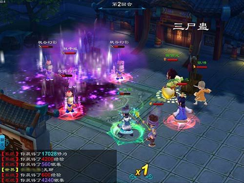 玩家在进入《大笑江湖》后,可以选择七大门派,其中以日月神教与五毒教的技能最为华丽。区别于日月神教的刚猛,五毒教的技能多以消弱敌人为主,多是全体攻击技能,附带各种各样的Buff。三尸蛊会招来一大片紫色毒雾攻击敌方,敌方除了受到内功伤害,还会进入“中毒”效果,每回合持续掉血。在战斗中,先手使用三尸蛊将会对战局有很大帮助。