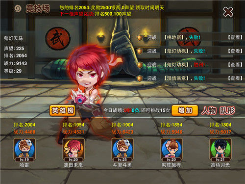 玩家每日可以在竞技场进行15词挑战,如果是VIP玩家的话,还可以获得更多挑战的机会。