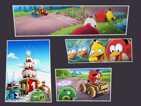 游戏的主角依然是各种小鸟和邪恶的绿皮猪,不过这一次小鸟们不再是射它们,而是与它们来一场赛车比赛。游戏采用了3D画面,画面精致,色彩鲜艳,里面的场景多少能看出些《愤怒的小鸟》中关卡的模样。