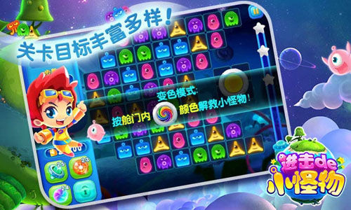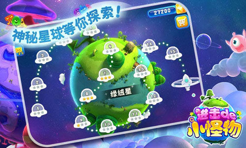 在《进击的小怪物》中,玩家将登陆到绿绒星、蘑蛊星、鸭博星、繁花星等你从未听过的神秘奇境,并探索各种神秘关卡,啫喱怪、果冻墙、小牢笼、厚冰块等障碍物无处不在,让你探索旅程欢乐加倍,无限关卡更让你尽情爽快不停歇,只要开动脑筋就能获得消除的超凡乐趣!