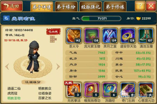 光明右使:唯一的乙弟子阵首选择,绝对唯一!右使的气血、防御成长甚至完爆任我、快活这样的甲阵首,这在旧版本的阵首弟子中绝对是不可想象的,小菜刀也就算了,现在连小血牛都出来了,看来非R玩家们的春天终于伴随新版本一并到来啦!