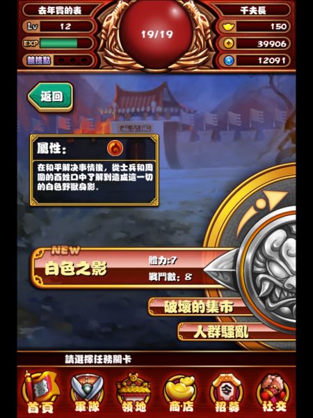 是知所进退、事半功倍,还是弄巧成拙、事倍功半?这就要考验小伙伴们的大局观和战术意识了。在进入战场闯关之前,系统都会有守关武将的属性提示,大家可以根据敌方属性,选取一些相克的武将参与闯关。譬如“白色之影”战场,系统提示其属性为“火”,那么小伙伴们大可选取5名水系武将+1名水系援军与之战斗,利用人数优势和属性克制,在最短的时间内完成通关,结束战斗。