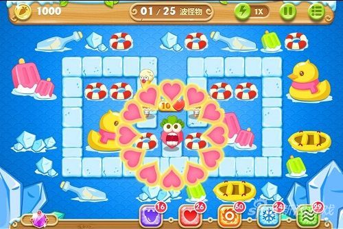 粉色水萝卜发射桃心晕眩光环萝卜英雄解锁可以说是《保卫萝卜2:极地冒险》中的一个小创新,而经过一番周折获得的新萝卜,也没有让玩家失望。粉红色水萝卜不仅有光鲜亮丽的外表,更有独门绝技——桃心晕眩光环!粉红水萝卜可以发射桃心晕眩光环对靠近他的小怪造成持续一秒钟的晕眩,可别小看这一秒的晕眩,往往能在十万火急的时刻起到关键作用呢!