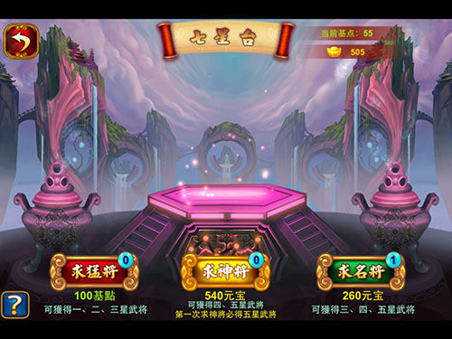 商店【七星台】:可通过求神将、求名将、求猛将的方式获取无敌神将。