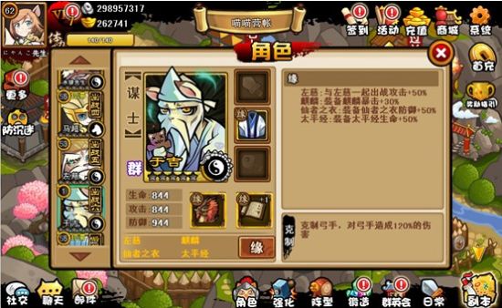 三国喵喵传在全球首款喵系网游《三国喵喵传》当中,这些强大的谋士,也当仍不让的成为所有喵喵们不能错过的强大战力。而在刚刚开启的新版本中,这位饱受争议的道士于吉就作为五星橙色谋士,成为了大家不容错过的顶级战将。作为谋士的顶级武将,在出战时对阵以攻击著称的弓箭,那将是极好的。