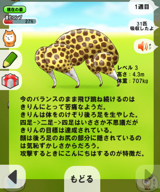 然后在办公室里大家一边呼喊着不能接受却一边欲罢不能地在进行吞噬囧……根本停不下来!进化吧!长颈鹿兄贵!喜欢猎奇向的玩家……你们懂的……目前游戏只上架了Android版,iOS玩家只能望鹿轻叹了……