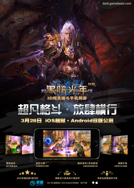 被多家知名游戏媒体评为年度最受期待手机网游,由掌趣科技(股票代码:300315)发行的全新3D闯关格斗手机网游《黑暗光年》,今日正式宣布将于3月28日(周二)开启iOS越狱/Android双版公测。