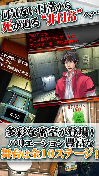THE 脱出ゲーム ~危険な10の密室游戏主人公健太郎被强制参加“危险的逃脱游戏”,玩家必须赌上自己的生命来逃出房间。本作的舞台一共有10个危险的密室,玩家可以和自己的女朋友樱以及其他好友一同逃出密室,寻找犯人以及找出事件的真相!