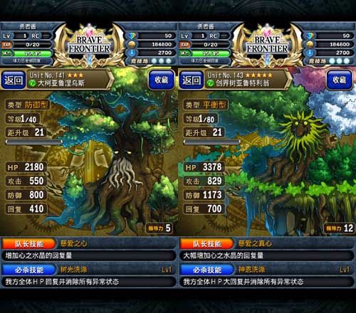 创界树亚鲁特利翁据说是格兰盖亚所有树木之祖,其存在本身便具有治疗周遭生物的能力,因此有人将其称为创界树并加以崇拜。创界树的队长技能是“慈爱之真心”,可大幅增加心之水晶的回复量,觉醒技能是能大量回复队伍中全体伙伴的HP并消除异常状态的“神恩洗涤”。创界树是目前游戏中泛用性最高的奶妈角色,防御属性在当前版本可以达到1570点以上,无论什么属性的队伍,都可以在队伍中放置一个创界树增加队伍的续航能力和吸收伤害。