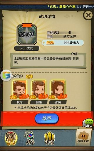 缺点是白凤、墨鸦、逍遥子三个弟子太脆皮,如果对面有暴力输出阵容,而前两回合又没破对面组合,就很难赢,虽然前排站的稳,但是后排太脆,不过好在这几个弟子的技能触发都不低。前两回合一般能威胁到对面后排。