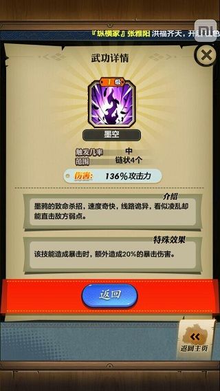 《秦时明月》手游——弟子墨鸦技能再推荐下弟子典籍选择,有缘的肯定得带。没缘的话,张良、墨鸦推荐带暴击典籍,黑衣、白凤推荐带速度典籍,前排肉盾就招架和闪避吧。