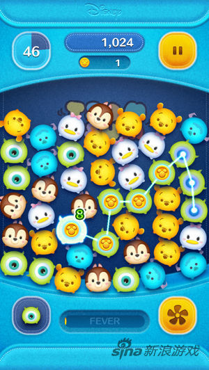 《LINE:迪斯尼消消看》是日本著名SNS软件运营商LINE与迪斯尼公司合作推出的消除游戏,画风可爱,尤其容易吸引女孩子的目光。故事发生在迪斯尼乐园的商店里,混乱的毛绒玩具们想赶在天亮开业之前整齐上架,可惜事与愿违局面更加混乱!而你只需要动动手指,触摸屏幕划线,将三个图案相同的玩偶连在一起即可达成消除。一局游戏时间为60秒,通过单次多个消除,除了取得高分还可能获得更高的BONUS机会。