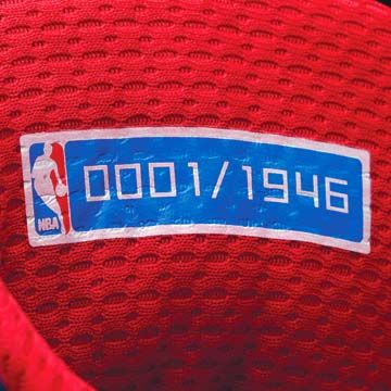 NBA联盟成立于1946年,NBA Anniversary 2014限量1946双。每双球鞋的鞋舌上都有一个四位数的序列号,顺序从0001号到1946号,同时包装内含有NBA官方防伪证书,以保证每位收藏者都拥有独一无二的NBA Anniversary 2014战靴。