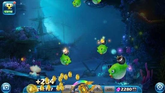 宝箱里,当然是满满的金币啦。不过有点常识的玩家都懂得,凡是古代巨型宝箱周围肯定有守护者。那一波波的小蓝鱼是挺漂亮的,但阻碍了我们获得宝箱的机会,看起来就有那么点不和谐了哦。趁着鱼群们轮换岗位的时候,赶快开炮射击最大的4只BOSS黄金鱼,抢夺宝箱刻不容缓。
