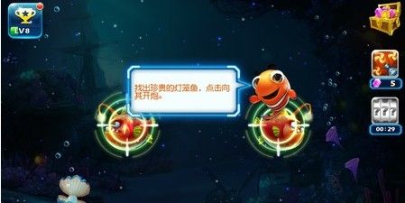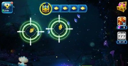 这个绝对考验你的眼力。那些长的一模一样的灯笼鱼,天知道哪条是带着宝箱的啊~~第一次2选1,第二次3选1,第三次竟然是4选1的节奏,虽然每次找到目标并开炮会有很多金币奖励,怎么看都是拼RP的节奏呢。
