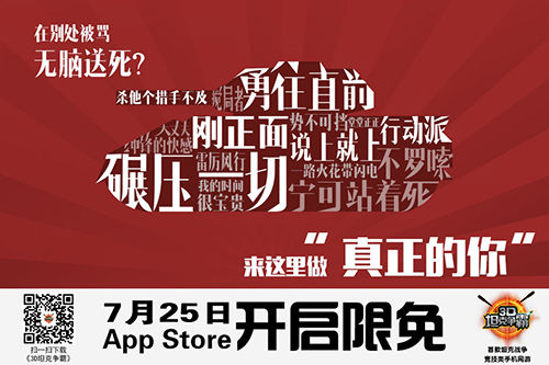 导语:国内首款坦克战争竞技类手机网游《3D坦克争霸》今日(7月25日)正式开启App Store限时免费下载,iOS越狱和Android版将同步开启全新服务器“中国第三战区”,全新宣传片和品牌海报也在今日正式曝光。玩家登陆游戏就有机会获得App Store多款畅销游戏和WOT丰厚点券以及《后会无期》电影观影券。于此同时第四届坦克争霸战正式开战,首款中国坦克“62式”将作为奖励隆重登场。