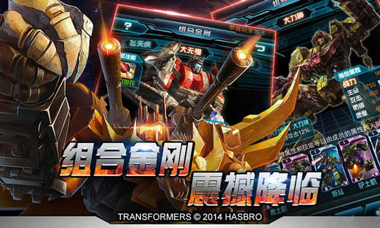 组合金刚 震撼降临今日,美国孩之宝正版授权手游巨作《变形金刚:崛起》重磅来袭!全新变形世界,任你操控,塞伯坦千年历史,由你续写!小伙伴们,整装待发,携手百万“刚丝”闯入全新世界,打造最强变形金刚战队,享受电影级视听盛宴!