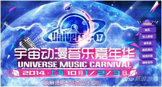 《六大门派》今日襄阳城破,你造吗!玩就送宇宙动漫音乐嘉年华,你造吗!Universe-17 宇宙动漫音乐嘉年华 10月1日 、2日、3日将在上海梅赛德斯奔驰文化中心横空出世!数十位国内外明星,二次元草根偶像,从早十点到晚九点,三天不重样的精彩演出让人期待万分。