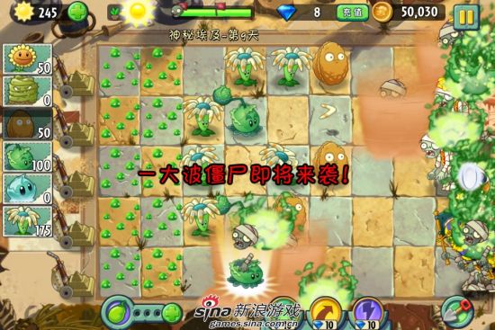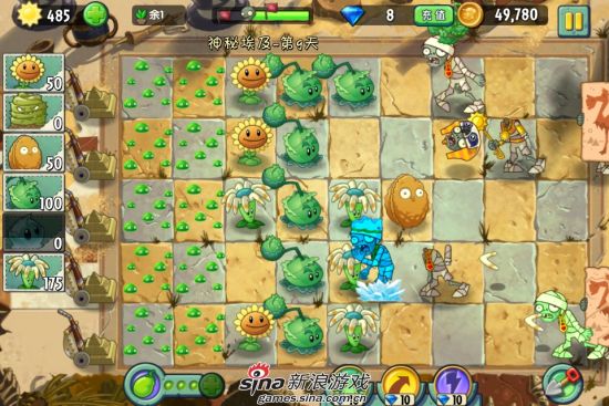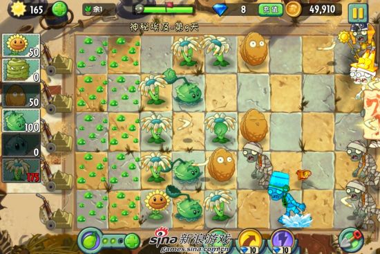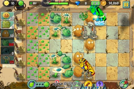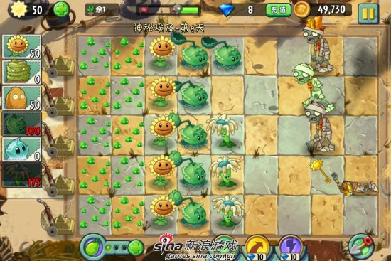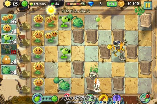 这一关我们说到了会多次出现铁桶僵尸和法老僵尸,一路打僵尸打过来,大家都知道这俩种僵尸也是僵尸群里的BOSS级别了,非常耐打,非常皮实。所以,攻击加防御体系一定要弄好,否则,一不留神你的植物就要被吃掉了。