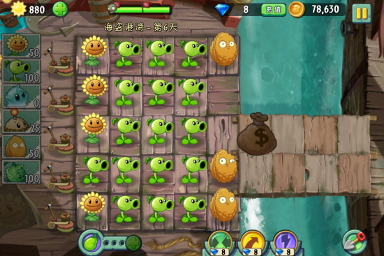 遇到比较难打的僵尸果断上坚果哦!比较容易,布局方法很多,大家自己研究,付截图给大家。
