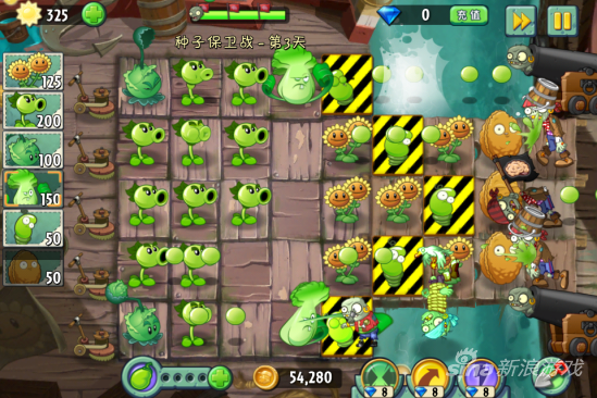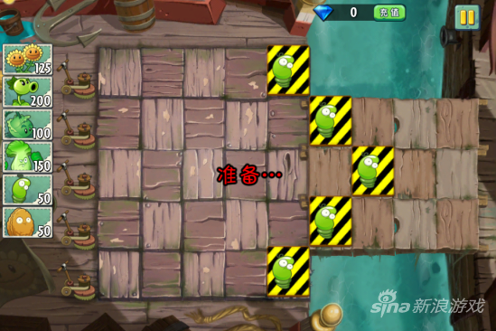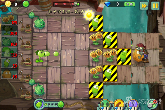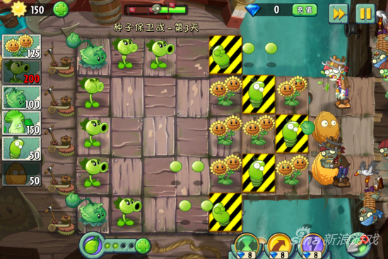 这一关我们要保护5颗弹簧豆,还有两个裸露在最岸边,因此保护难度非常之大。