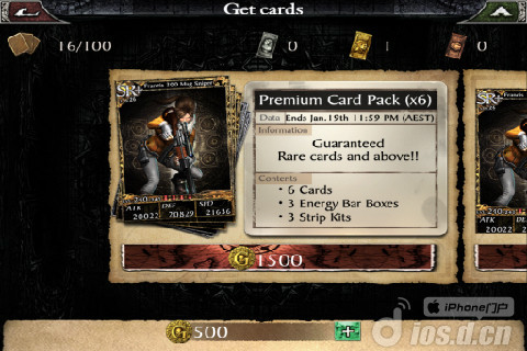 Getcards其实就是购买卡牌的地方,不过还好至少前面两张拿游戏里的金币购买就可以了,后面的卡牌都需要完成特定条件或者直接拿RMB抽牌。