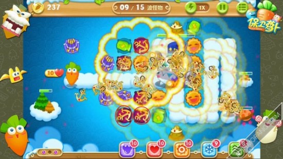建造一个太阳花塔(满级)和一个多重箭塔清除道具