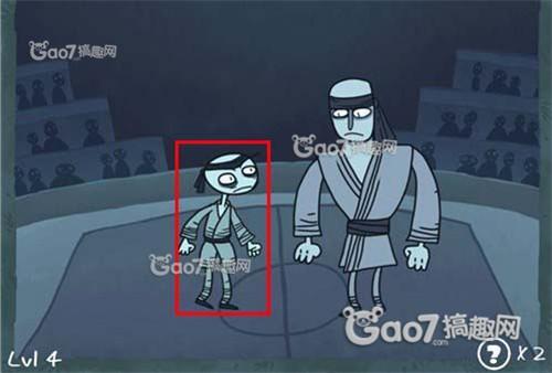 《史上最难的游戏》第四关攻略:不停的点击左边的小人,不一会他会疯掉被送进医院。