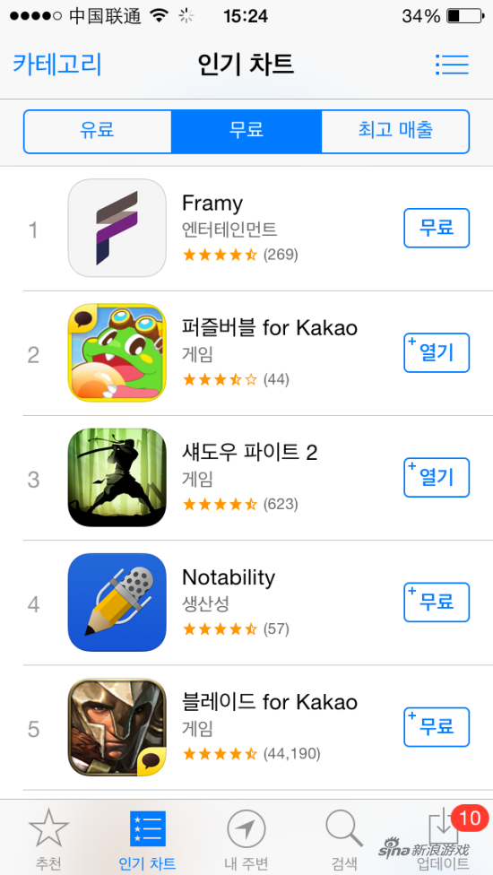 韩国app store账号注册教程图片3此时手机跳转为韩文,但是如果不想用信用卡注册,此时我们需要关闭App Store应用程序,然后重新打开,在如下图排行榜第二列免费排行榜中随便选择一款游戏点击下载,与中国区下载游戏一样。