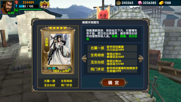 ① 搭配,例如我现在用的组合,虽然不是最好,但也尽量追求完美配合,龙姑娘+独臂浪子+师祖婆婆+郭大侠+黄小蓉+顽童周+道法真人,其中有四张卡片满属性。所以说不是无目的的追求橙卡,根据现有卡片有目的的选择橙卡、紫卡,以求相互联系,七张橙卡的战力加成不一定比有配合的紫卡橙卡战力加成高。