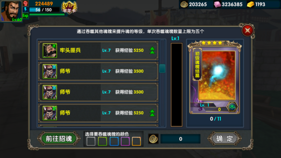 用同属性绿卡、蓝卡升级魂魄结晶,一个就可以使魂魄结晶满级