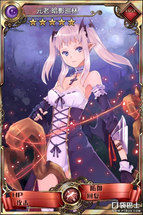 新蕾知名画手八才,以精致细腻的画法将暗夜巡林平和温柔的元老形象还原与卡牌之上。