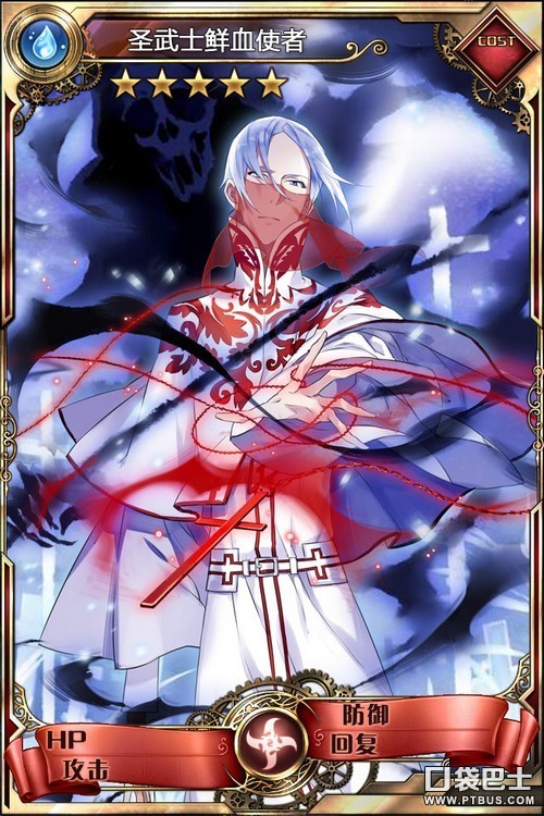 鲜血使者,可怖的死神代表,传说饮下神血的男人。卡牌形象还原剧情中其“极瘦、常年蒙面”的设定,战斗力在圣地十三武士中排名第一,但较为神秘。